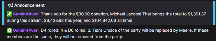 I'll return to business with Maelle, Verso, and Monoco--assuming I don't see any other donations. I will do as many dice rolls as needed before the next stream, so don't be afraid to fire away!