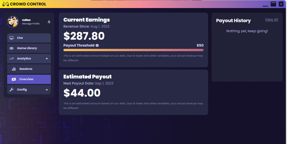 For transparency, here are my Crowd Control revenue numbers. The $44 was what I started with from Beta testing that hadn’t yet been paid out and was added to the top number which was purely from Friday night’s stream.
